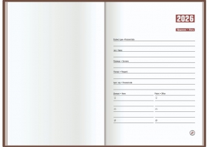Одна сторінка – один робочий день, субота та неділя на одній сторінці, інформаційний блок – 4 сторінки, блок для нотаток в клітинку - 30 сторінок.